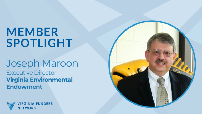 This month’s “Member Spotlight” features Joseph Maroon, Executive Director at Virginia Environmental Endowment (VEE). Here’s a little about Joseph and his work in philanthropy: