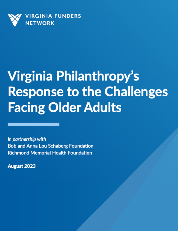 “Virginia Philanthropy’s Response to the Challenges Facing Older Adults” is a report highlighting the need for philanthropic resources to support the growing population of older adults. Using a field scan survey of 24 funders, the report analyzes current work being done in philanthropy to address challenges faced by older Virginians and identifies where investments are needed to ensure older adults are able to age in place.